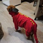 With love, we call him Scooby Dooby Doo, and we love you! Thank you for an amazing Red Jumpsuit-type Dog raincoat