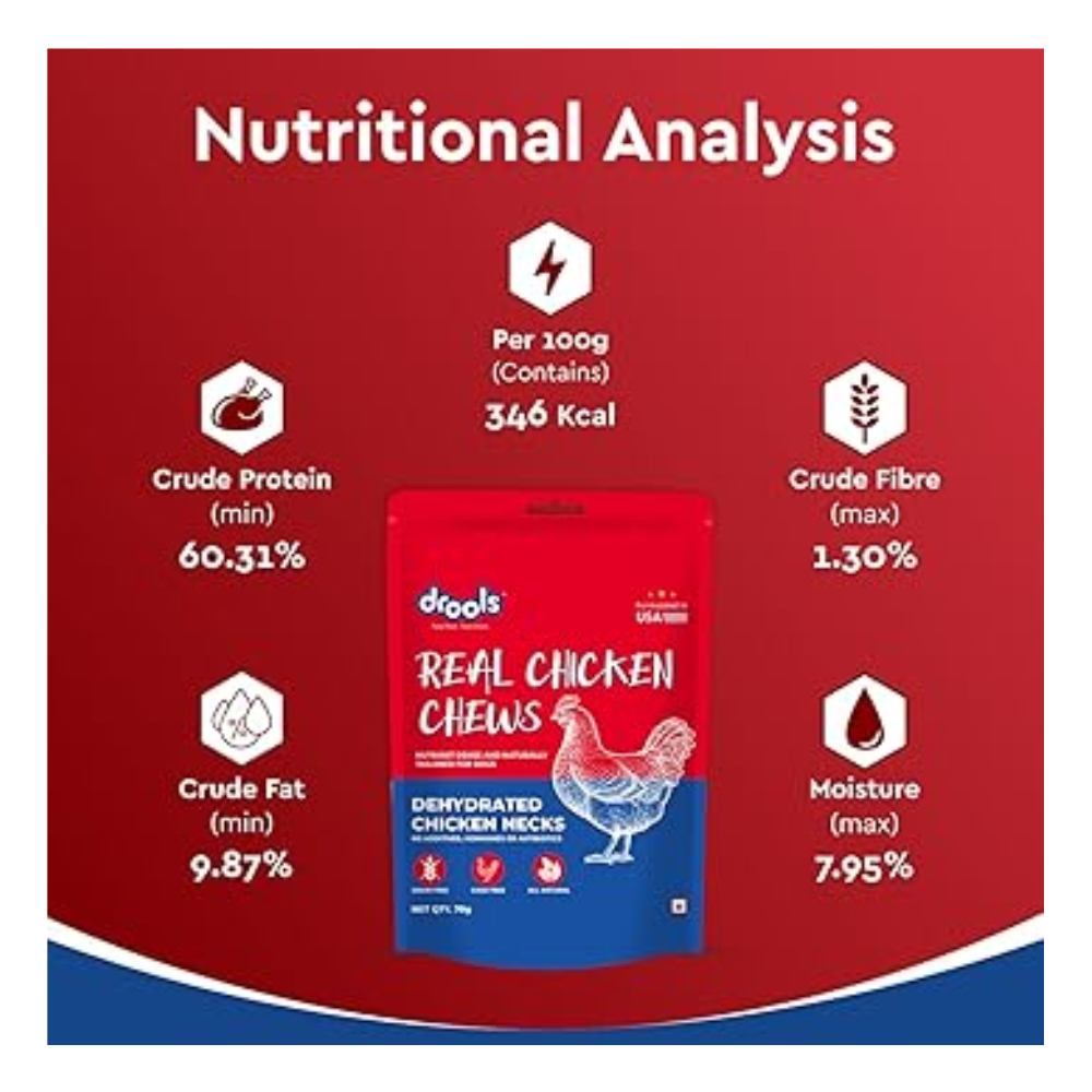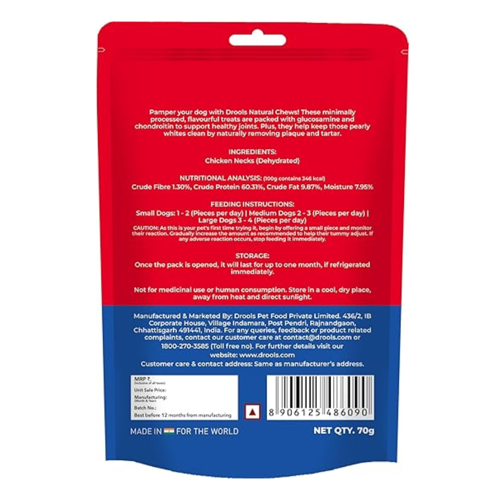 Drools Dog Treats, Dehydrated Real Chicken Chews Necks, 70g