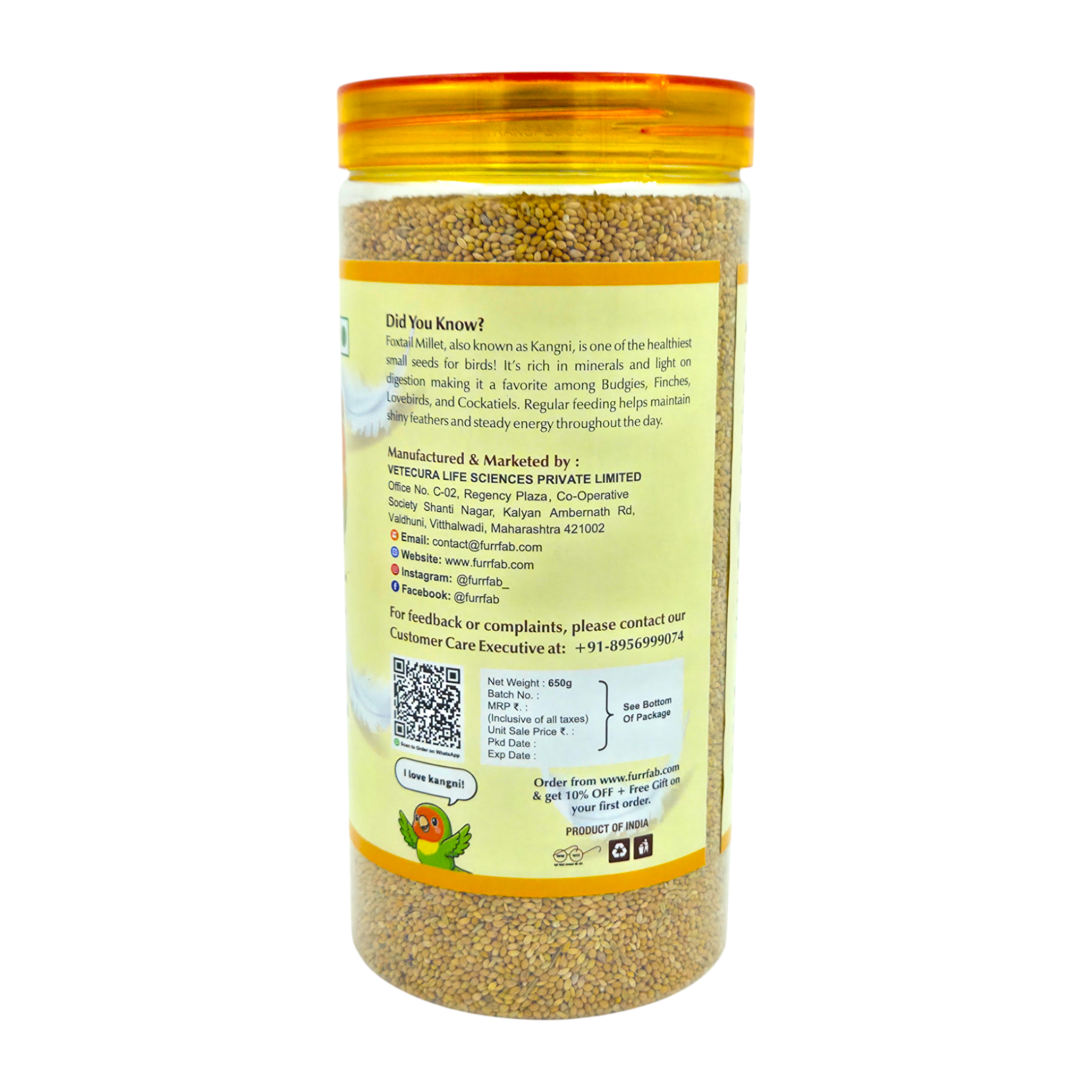 Furrfab Foxtail Millet (Kangni Seed), 650g | 100% Natural Daily Nutrition for Pet Birds