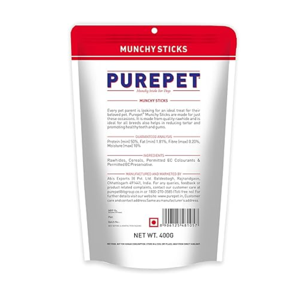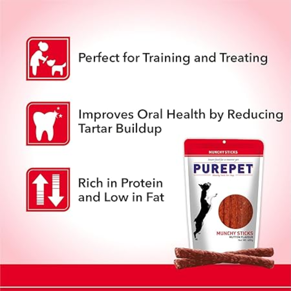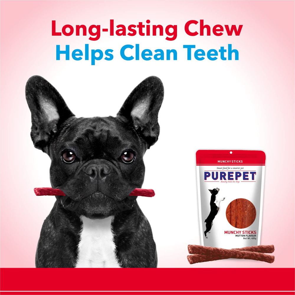 Purepet Dog Munchy Sticks, Mutton Flavor-400g, All Life Stages
