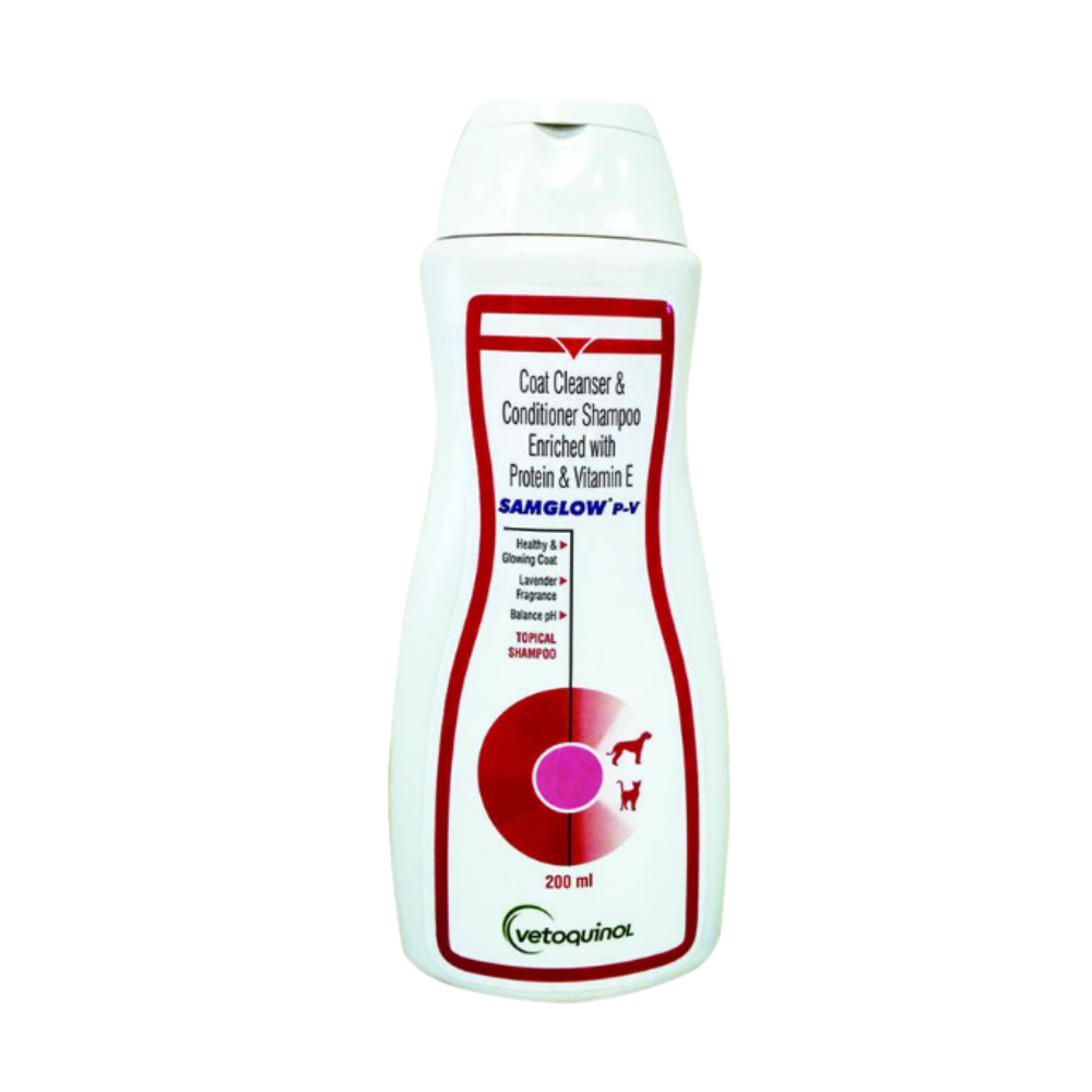 Vetoquinol Samglow P-V Coat Cleanser & Conditioner Shampoo for Dogs & Cats, 200 ml (Pack of 2)
