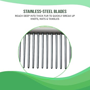 - Removes tangles, mats, and loose fur effectively